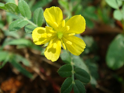 Though some plants are thorny, they bear beautiful flowers and have also medicinal properties; you see a flower of Tack weed (Tribulus terrestris, 'Nerunji' in Tamil).A blue flower with thin petals from a weed that has also tinnier leaves: